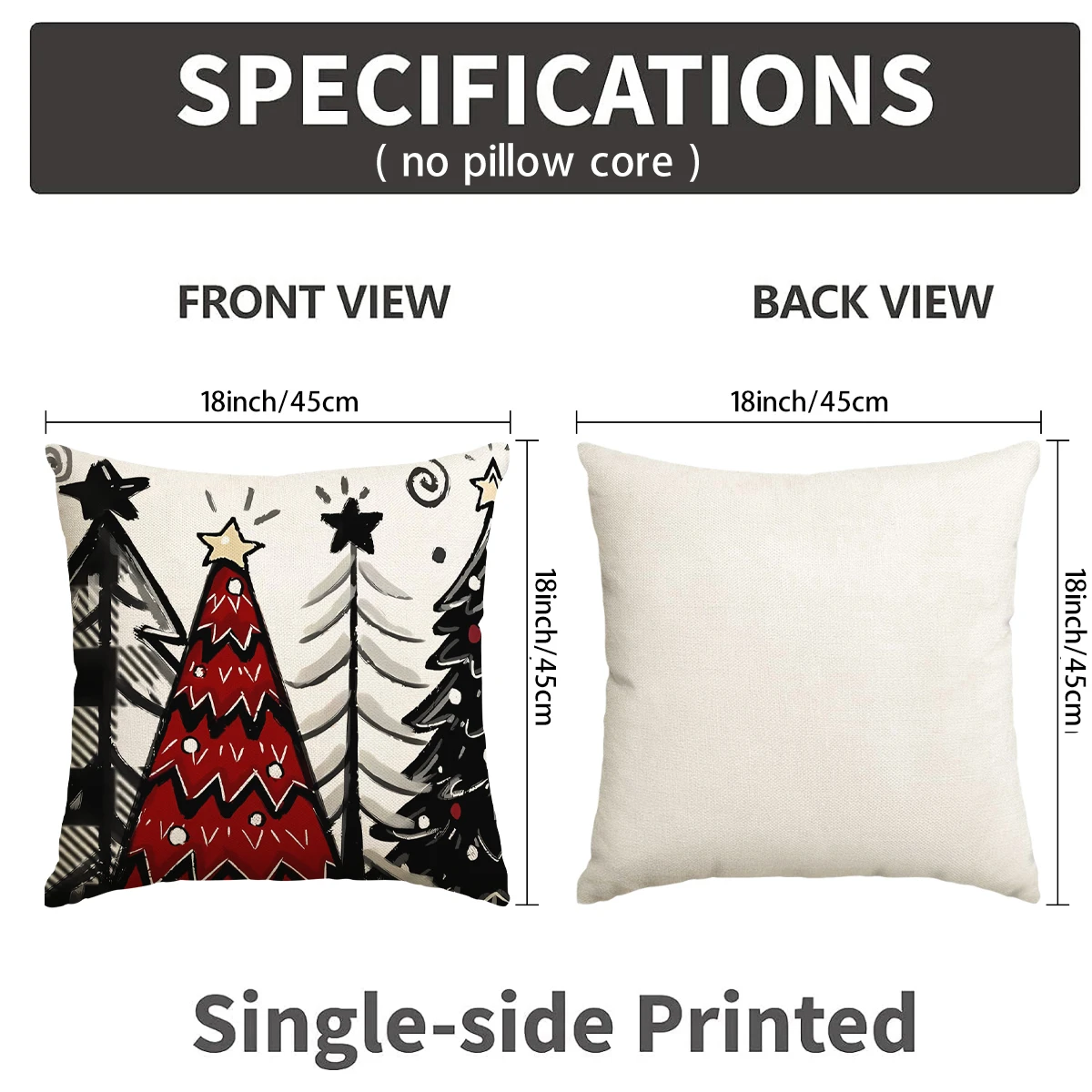 ❄️Red Snowflake & Letter Printed Christmas Pillow Covers (1/4pcs) - Festive Holiday Cushion Decor 🎄