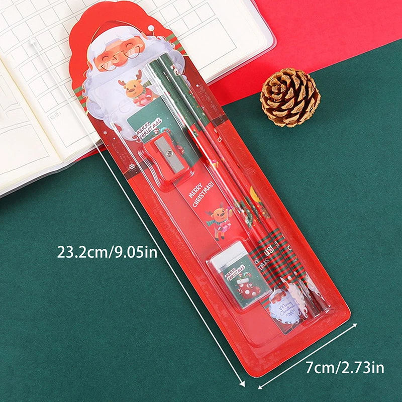 ๐๐ 1 Set Christmas Stationery Set โ Kids Cartoon Pencil, Eraser, Ruler, Memo Pad & Sharpener | School Supplies & Holiday Gift ๐ ๐