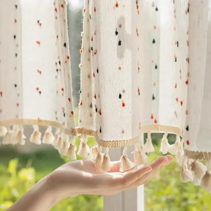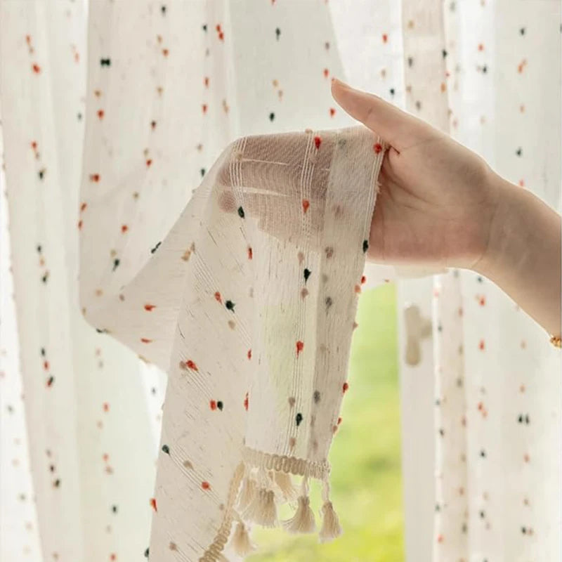 🌈 Tassel Edge Rainbow Ball Linen Curtains 🏡 | Translucent Gauze Drapes for Living Room, Bedroom & Kitchen ✨